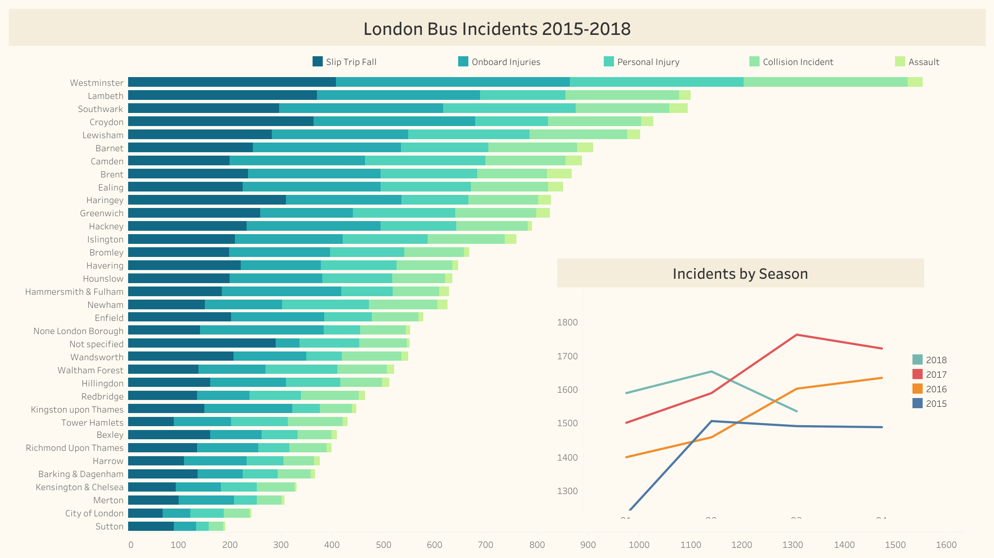 I created this stacked bar chart and time series line graph for London bus incidents